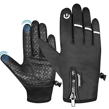 SAWANS Mens Cycling Gloves Thermal Winter Warm Gloves Touchscreen Adjustable Windproof Anti-Slip Women Shock Padded Bicycle Biking Gloves Outdoor Running Hiking (M, Black)