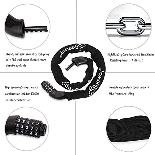 ✅ 【 High Security Combination Lock 】 Beeway 5-digits codes bike combination lock has the number of 100000 possible combinations ( original password is 00000 ), increased the lock security. And it’s convenience that you don’t need to bring a key, just remember the code you reset.