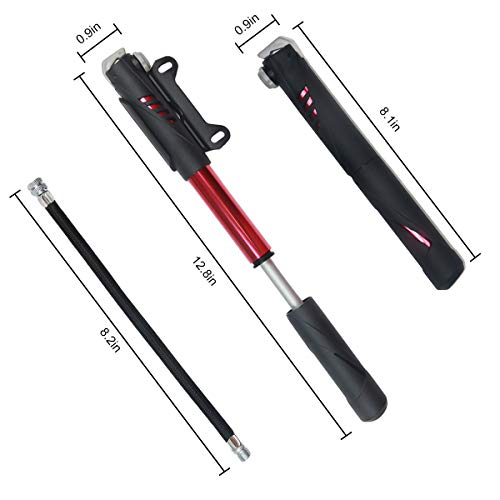 🎁2.【Portable Bike Pump】:Size 8 inches, convenient and small. Made of high-quality aluminum alloy barrel and precision parts, just simply unscrew the nozzle counterclockwise by hand or with small tools to switch Presta Valve into Schrader Valve.