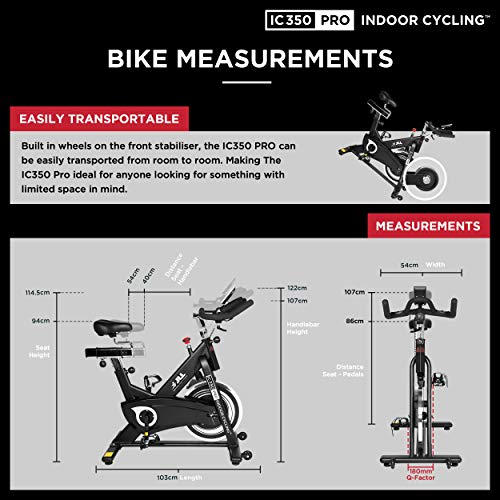 Direct belt driven exercise bikes for home use with 7kg Advanced flywheel and adjustable friction resistance. 3-Piece Crank, 9 vertical handlebar adjustment levels, 4 horizontal and 10 vertical seat adjustment levels