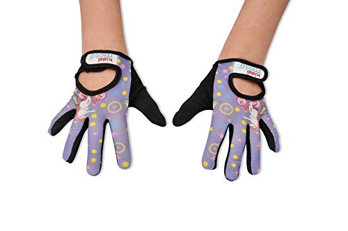 Full Finger Children’s cycle glove mitts Kiddimoto children’s cycling/scooter gloves protect little hands while being comfortable, functional and pretty cool. Say goodbye to grazed palms and scraped knuckles with their very own grown up gear for a quick turn around the block or a Sunday afternoon cycle route. The gloves provide added grip on handlebars and they have padded palms for any inevitable tumbles. They are full finger for easy manoeuvrability and are made from breathable comfortable stretch fit mesh backed fabric. They simply secure over the wrist with Velcro so can grow with your child. What’s even better is Kiddimoto gloves come in matching patterns so you can blend with your balance bike, bike bell or cycle helmet. Choose Your Size : Small (2-4 years) / Medium (4-6 years) / Large (6-8 years). Durable / adjustable / stretchy / washable